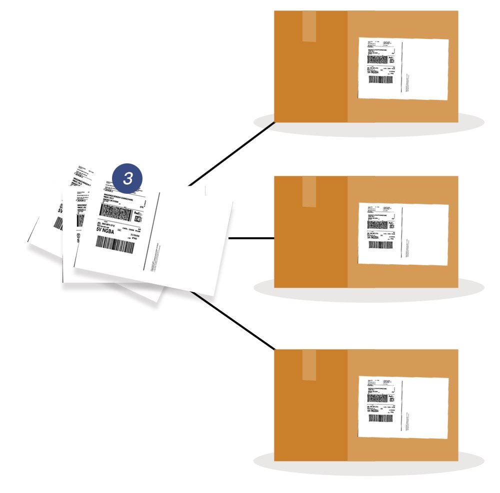 Fedex的一单多包裹服务,除了主运单包裹以外,其他每一个包裹都将对应一个唯一的运单号,又称为子运单,请按您做单时填写的包裹顺序一次张贴。所有子运单都将作为主运单的包裹一起运输。