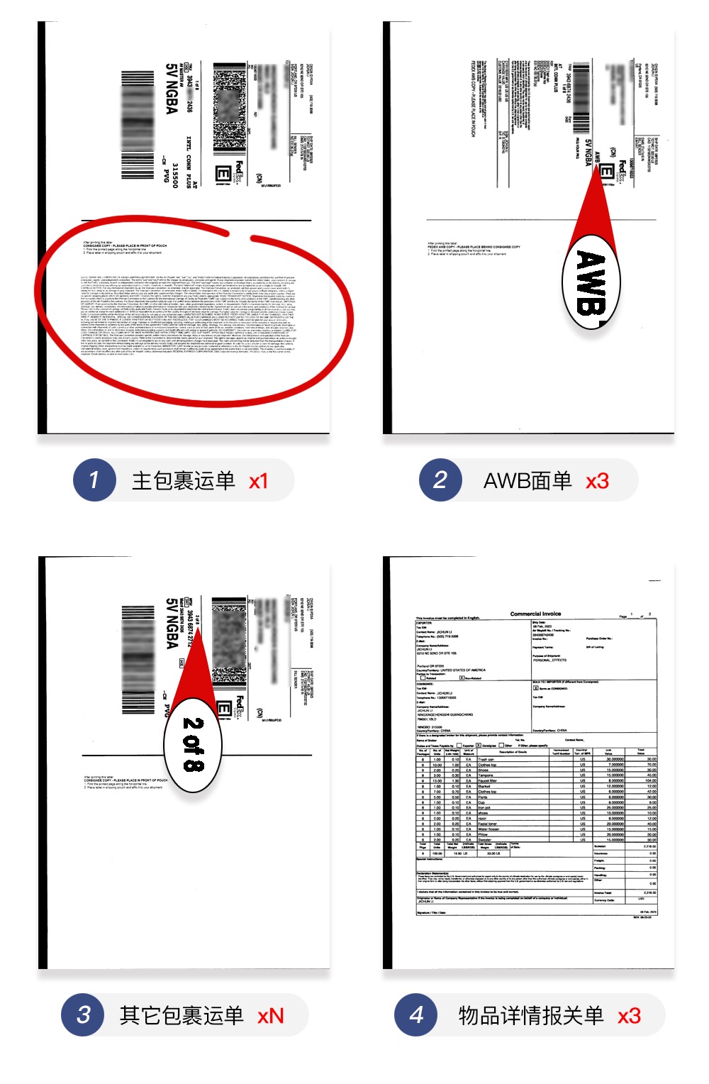 FedEx国际运单面单较多,请详细阅读以下说明,严格按说明张贴面单。